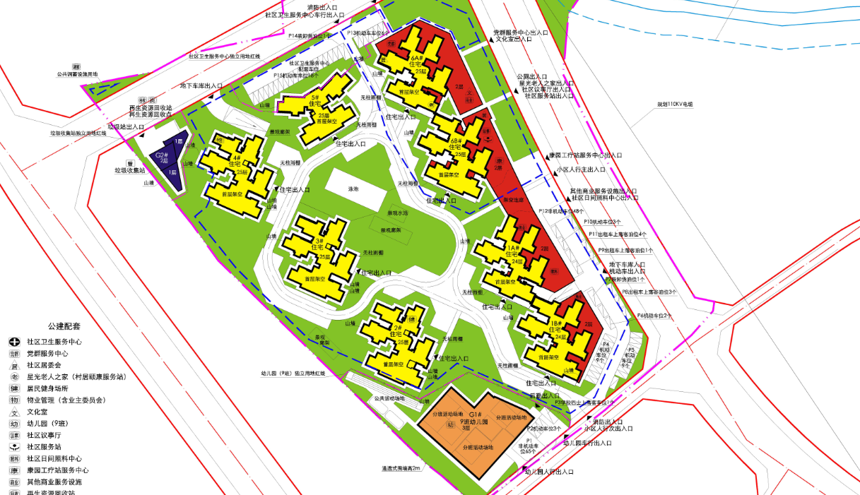 公建配套项目方面,配有社区卫生服务中心、党群服务中心、社区居委会、星光老人之家(村居颐康服务站)、居民健身场所、物业管理(含业主委员会)、文化室、幼儿园(9班)、社区议事厅、社区服务站、社区日间照料中心、康园工疗站服务中心、其他商业服务设施等。