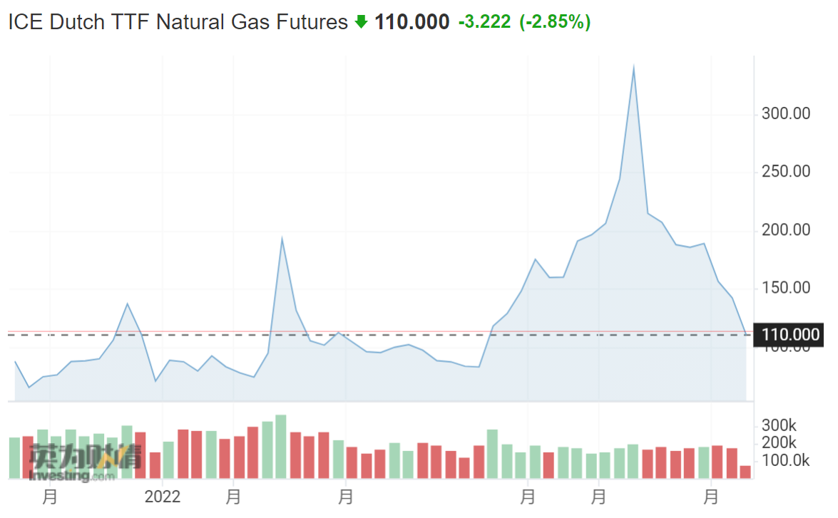 上述欧委会最新政策叠加近期气候温暖,以及欧盟和英国的储气库完成填充目标、欧洲经济放缓减少天然气需求等因素,荷兰TTF即月期货价格持续下挫。
