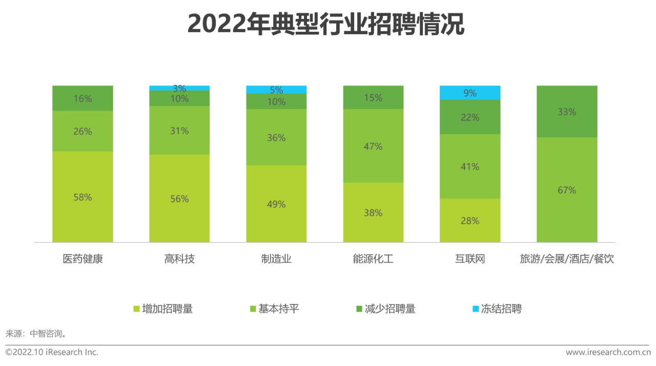 10月19日,艾瑞咨询发布《2022年后疫情时代大学生求职者洞察报告》(下称《报告》),并指出,伴随经济在波动中企稳,人才市场需求整体呈现稳中有升的态势,但各行业表现差异明显。