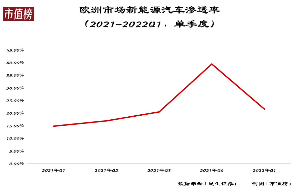 第一,欧洲是新能源汽车鼓励政策最激进的市场,市场对电动汽车的接受程度较高,电动汽车生态系统也较为完善,新能源汽车渗透率持续走高。