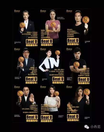 比如神州专车针对当时Uber等竞争对手,采用“Beat U 我怕黑专车”主题的系列广告: