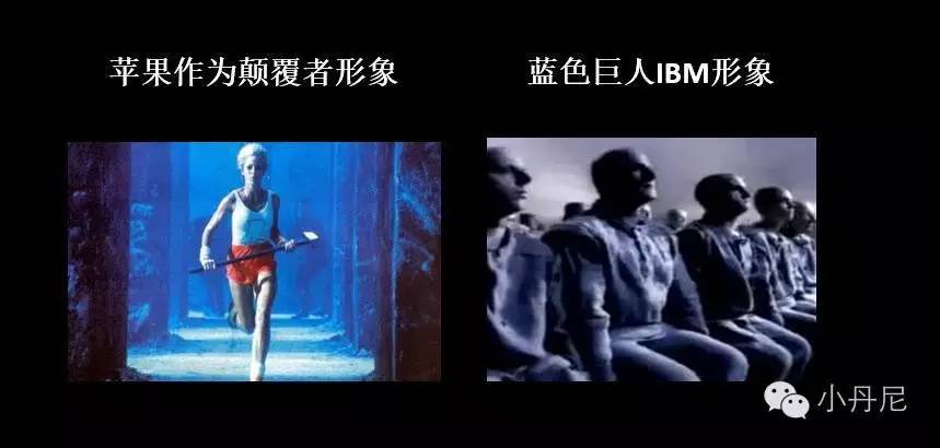 比如当年苹果著名的“1984”广告。针对“蓝色巨人”IBM对大型计算机的垄断现象,苹果作为颠覆者的形象,让计算机变得普通人可及的高科技,而非控制人的生活。