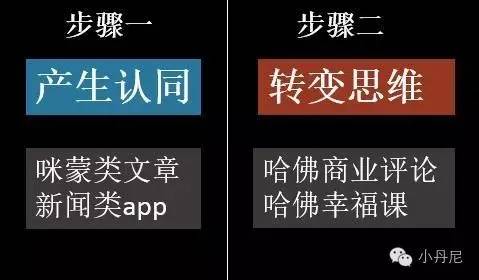 所以你往往需要经历步骤一:“产生认同”,才能达到步骤二:“转变思维”。