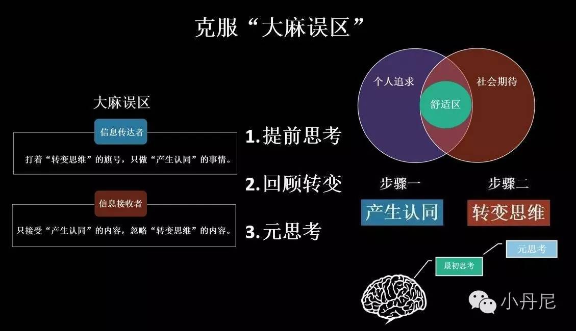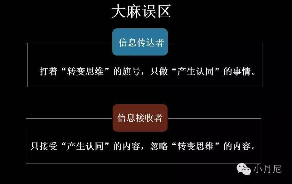 接下来我们谈谈“大麻误区”第二种情况:作为信息接收者(读者或听众),我们只是去接受“产生认同”的内容,忽略“转变思维”的内容。