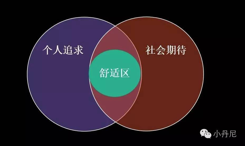 但是,如果你的“个人追求”和“社会期待”重合度低,那么你跳出舒适区的动力就会减少。