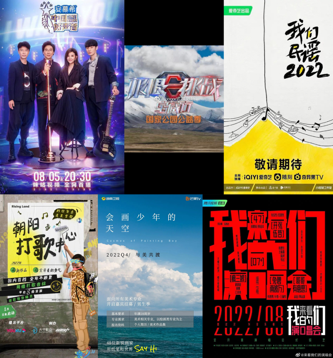 台端方面,月底《好声音》决赛、《极限挑战宝藏行3》等卫视王牌蓄势待发,此前遭遇状况的节目即将扎堆在Q4释出。网端方面,爱奇艺的《我们民谣2022》、优酷的《朝阳打歌中心》、腾讯视频的《来看我们的演唱会》、芒果TV的《会画少年的天空》都彰显出长视频开发新综项目的实验性,致力于给市场带去新内容的“鲶鱼”。