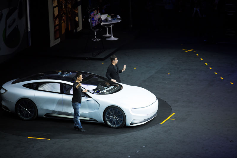 其二则是在2014年宣布SEE 计划的乐视。今年刚过去的北京国际汽车展览会上,乐视在会上第一次发布了研发的概念车,其中无人驾驶、电磁充电技术和高速互联网连接成为乐视宣传攻势中的亮点。乐视CEO贾跃亭在近期接受的外媒采访中表示,希望可以超越特斯拉,把整个产业带入一个新时代。