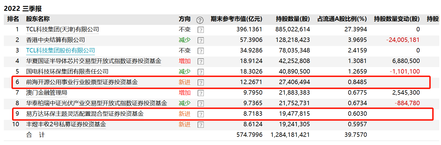 昨日晚间,TCL中环(002129.SZ)披露三季报。前十大流通股东中,崔宸龙管理的前海开源公共事业、祁禾管理的易方达环保主题成为新进股东,持股为2740.65万股、1947.78万股,位列第6、9位。