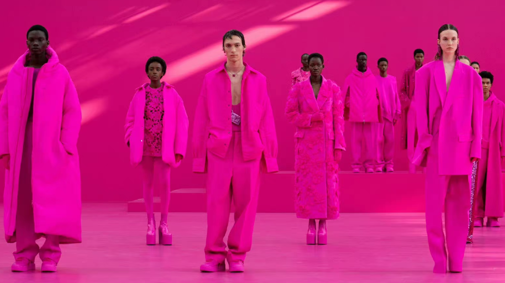 “粉色是我想到的第一个颜色,因为它总是出现在我的系列里……粉色表达了一种无意识,一种对现实主义需求的解放。”Valentino 现任创意总监 Pierpaolo Piccioli 曾说道。