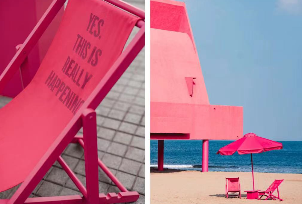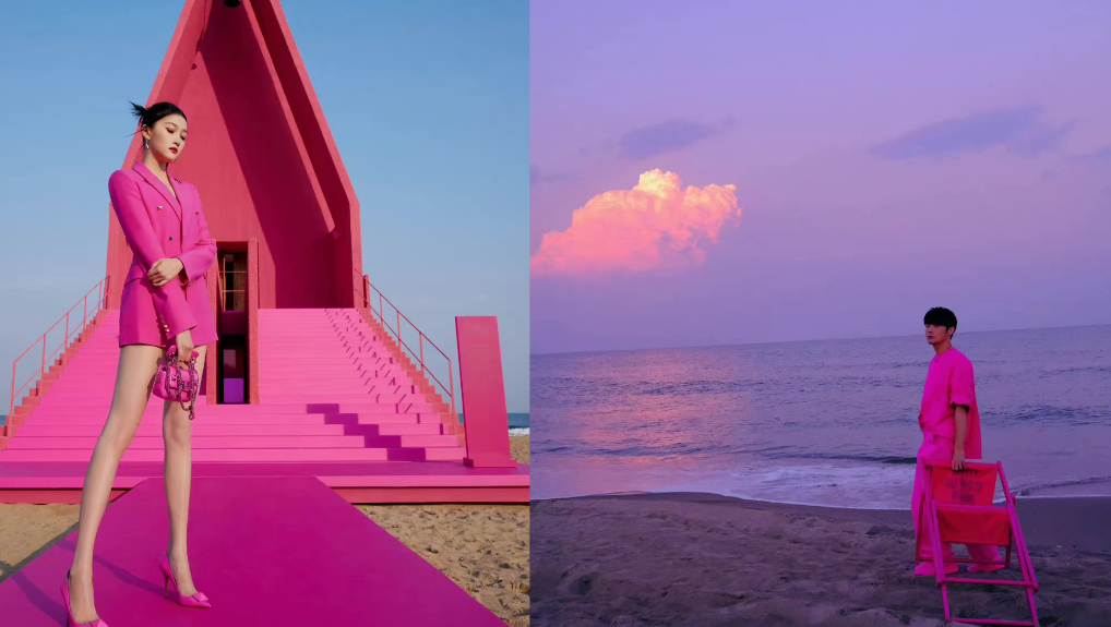 上图:Valentino还携手张艺兴、关晓彤、李荣浩、郑秀妍等众多明星在阿纳亚举办了“Valentino Pink PP 粉耀海岸活动”。一时间Pink PP的时尚打卡大片引爆社交媒体,KOL和游客们纷纷晒出与粉色建筑、粉色装置、粉色咖啡的合影。