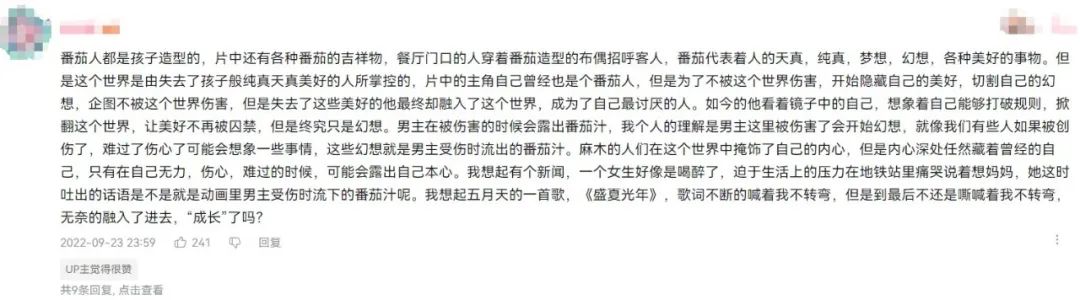 有的网友认为,番茄代表了各种美好事物,而当人类长大后为了免受伤害开始隐藏这些美好。
