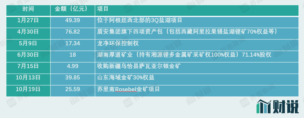 面对整个资源行业的拐点,紫金矿业依旧选择逆势加仓。仅今年公司便收购7个项目,合计金额高达231.98亿元,其中不乏锂矿项目、金矿项目等。
