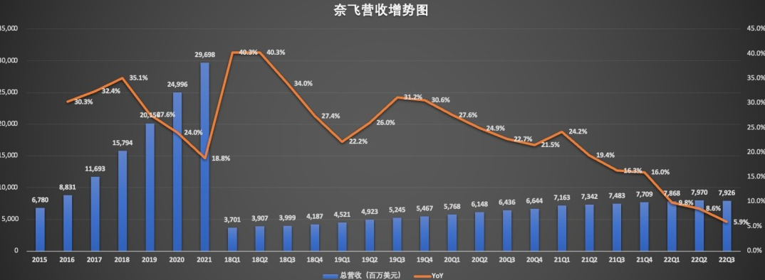 首先,受订阅用户数增长驱动,奈飞本季度营收实现5.9%的同比增长。