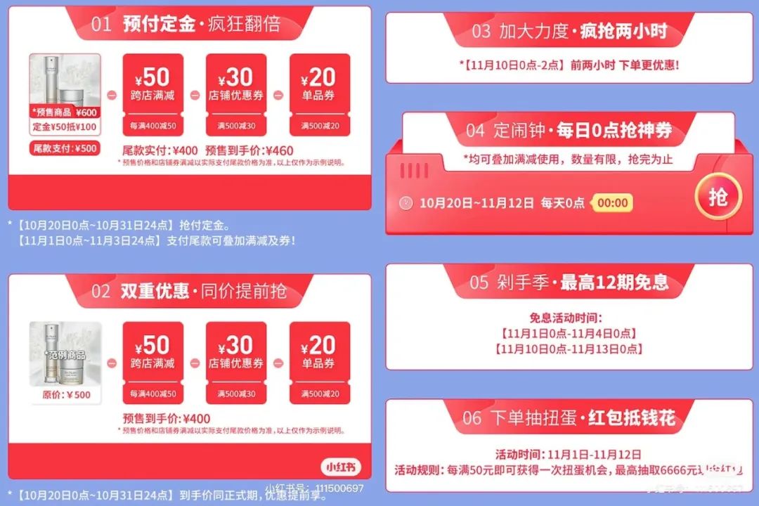 不止天猫和淘宝。在双十一完全变为全平台,甚至线上线下的购物狂欢节之后,无论是京东、拼多多等纯电商属性平台,还是抖音、快手,甚至是小红书,此类积极拥抱“电商业务”的流量新贵,都陆续加入双十一的“厮杀”,并且逐步推出针对双十一的规则和玩法。