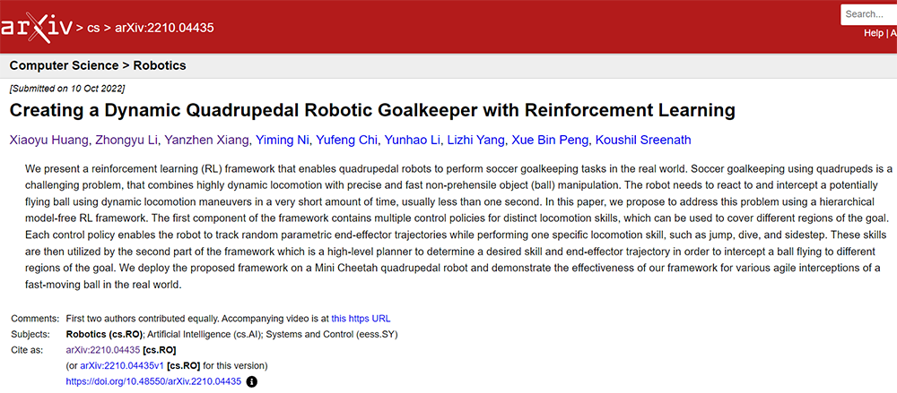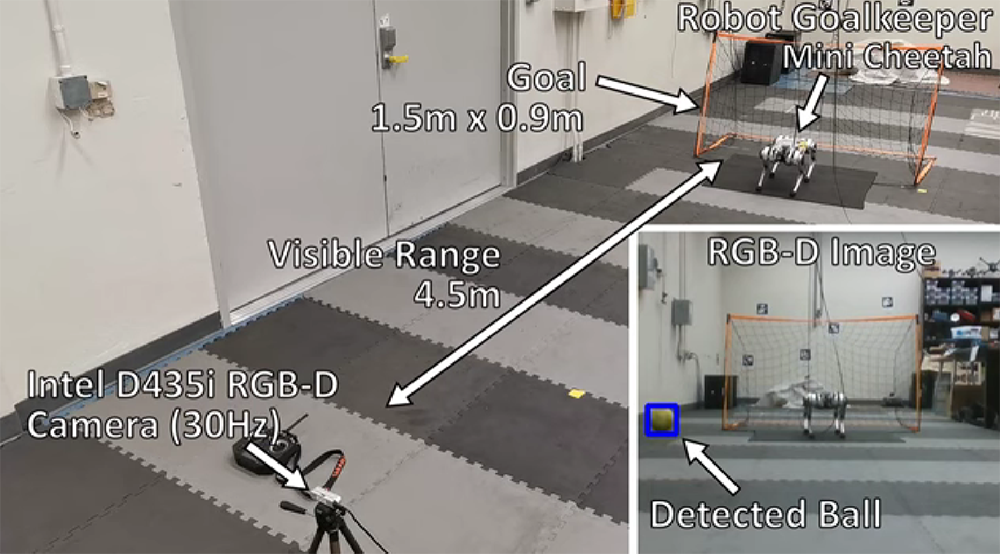研究人员在麻省理工学院实验室进行了拦截足球的相关实验,并发表了名为《Creating a Dynamic Quadrupedal Robotic Goalkeeper with Reinforcement Learning(使用强化学习创建动态四足机器人守门员)》的论文,研究实验展示了四足机器人能够有效地拦截快速移动的球。