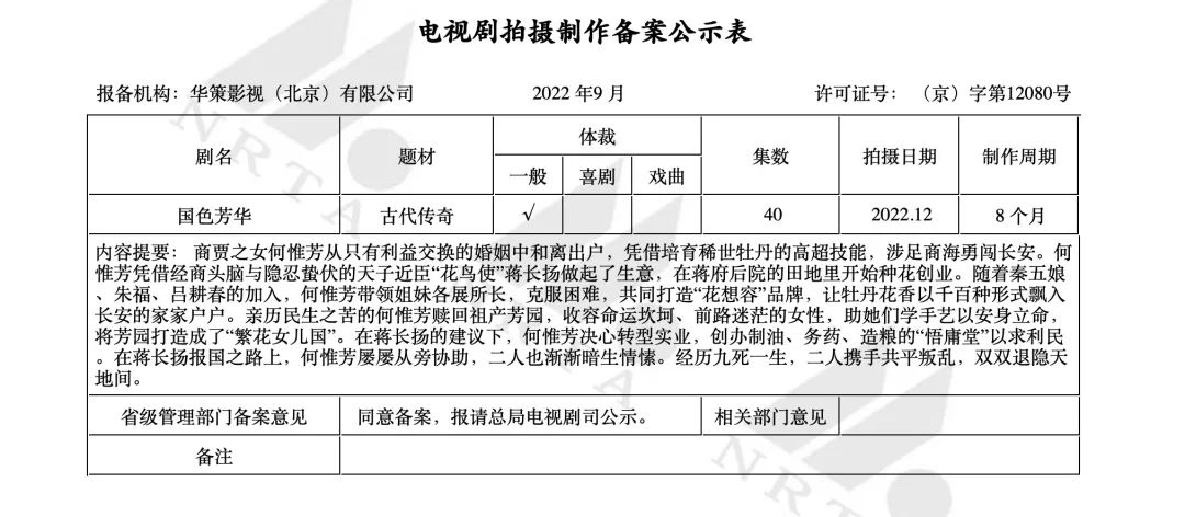 这也就不难理解为什么华策影视会选择《国色芳华》。踩着爆款的脚印前进更容易博得关注,而其自身在古装题材上也有丰厚的制作经验和受众基础。