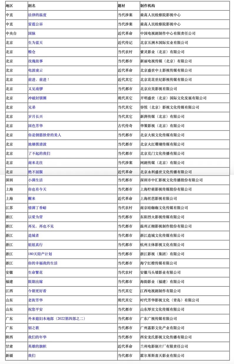 近日,国家广播电视总局通过官网发布《关于2022年9月全国拍摄制作电视剧备案公示的通知》(下文简称《通知》),公示信息显示,9月全国电视剧拍摄制作备案剧目共38部、1332集。