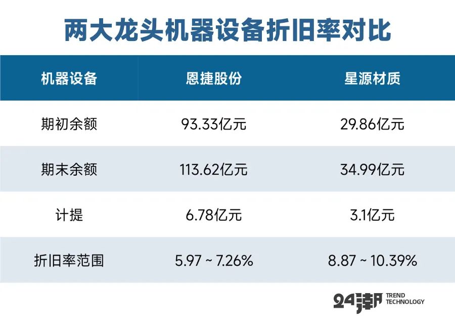 另外,上海恩捷的设备主要来自于日本制钢所,而星源材质的设备则主要来自于德国布鲁克纳,两家设备制造厂商的机器设备可能存在一定的差异,而这种差异是否会导致折旧年限的不同,我们还无法得知。
