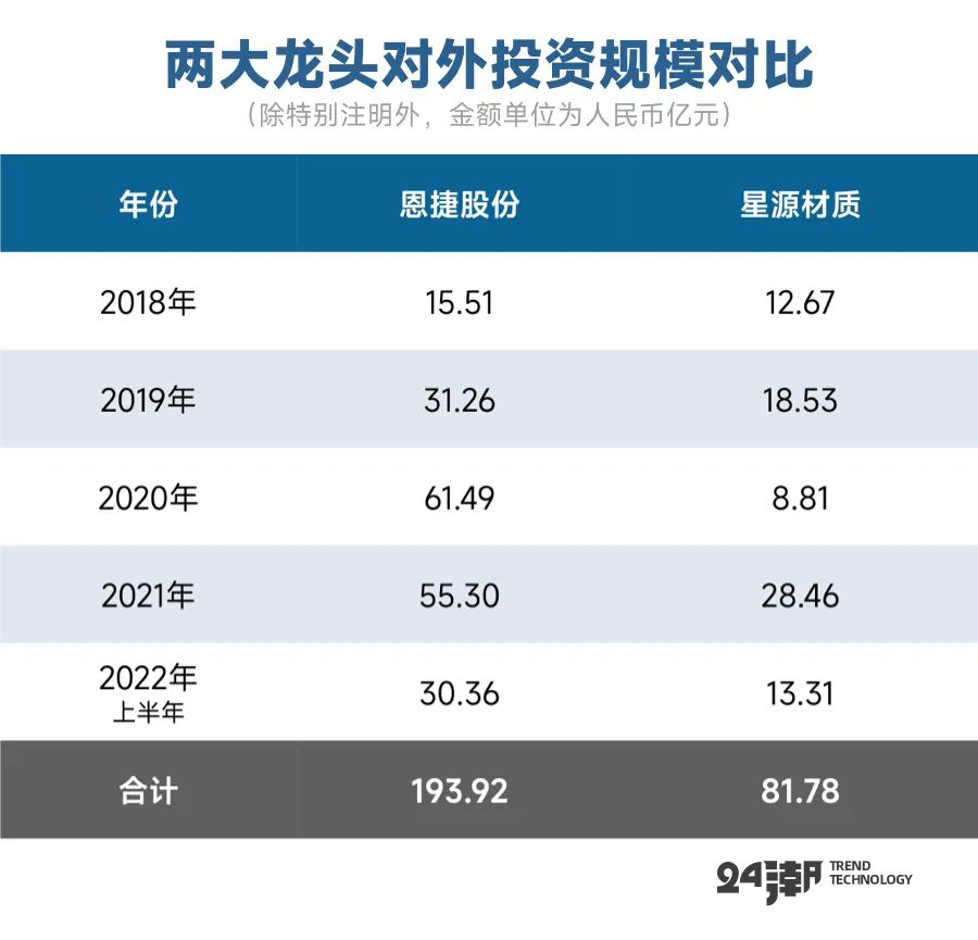 比如据24潮统计,2018年-2022年上半年恩捷股份合计对外投资193.92亿元,这是星源材质的2.21倍。