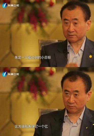 王健林:先赚一个亿,那时候一栋楼还不止一个亿。我在公司里提的目标是三年目标做到一个亿,当时公司很多同事还是觉得不可能实现,我记得很清楚,马上就有一个人科长站起来,你这个经理你这是说胡话呢这是,我们现在一百万都没有,怎么能做到一个亿,我说这是个目标嘛,定个目标咱们去奋斗,做到了不是更好做不到挣了八千万,咱也挺乐呵,挣了五千万不也挺好嘛。那先把目标放大。