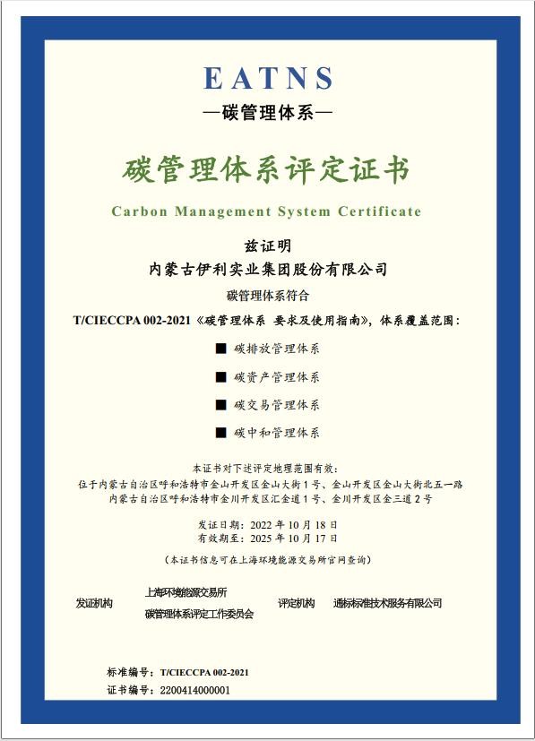 《碳管理体系要求及使用指南》是全球首个综合性的碳管理体系标准,该标准系由上海环交所、上海质量管理科学研究院牵头起草,复旦大学、南京大学等十余家单位共同制定,由中国工业节能与清洁生产协会发布,评定流程极为严苛。SGS中国区总裁郝金玉表示,伊利是行业内第一家通过《碳管理体系要求及使用指南》认证的企业,标志着伊利已经建立了完善的碳排放管理体系、碳资产管理体系、碳交易管理体系、碳中和管理体系,为2050年实现全产业链碳中和打下了坚实的基础。