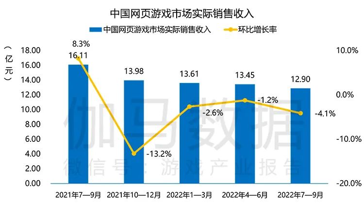 2022年7—9月网页游戏市场规模:市场规模12.90亿元,环比下降4.1%