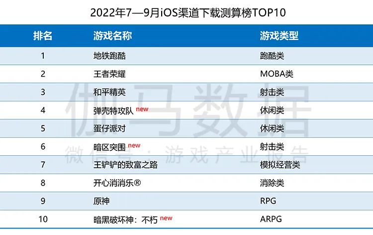 iOS渠道下载测算榜TOP10:《地铁跑酷》登顶,3款新游上榜