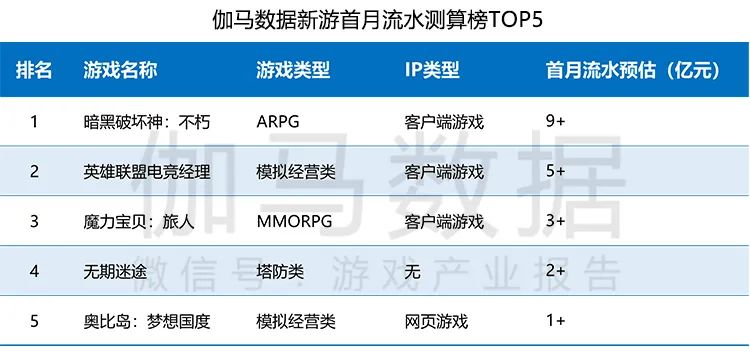 新游首月流水榜TOP5:模拟经营类2款,客户端游戏IP改编产品3款