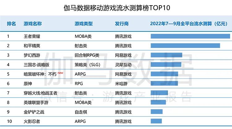 移动游戏流水测算榜TOP10:游戏类型7种,腾讯产品占6成,新游上榜1款