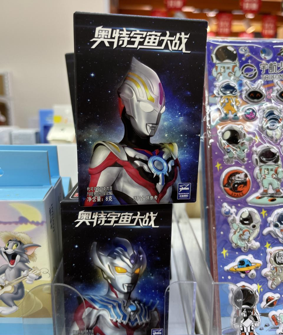 市面上除卡游发行的奥特曼卡牌之外,其他品牌发行的奥特曼卡牌,只有随零食或玩具附赠的卡牌较为多见。作者拍摄。