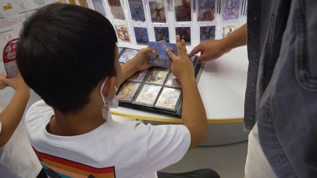 卡游店铺中和朋友晒卡换卡的孩子,作者拍摄。