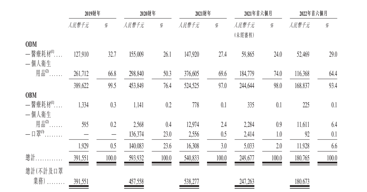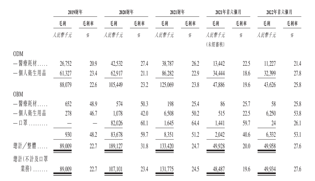 2020年,在口罩业务的带动下,佳捷康OBM业务收入占比超过20%。但其余年份,ODM业务的收入占比均在10%以下。2022年上半年,OBM收入1193万,同比增长137%;收入占比6.6%,同比增长4.6个百分点。
