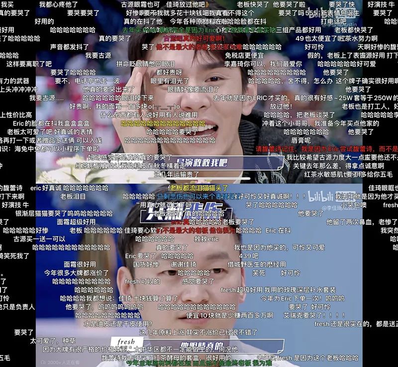 在Eric与李佳琦对面膜套组进行价格谈判时,因被压价10块钱后,表现出的“打工人”左右为难与压力的状态,瞬间引起无数网友的共情。