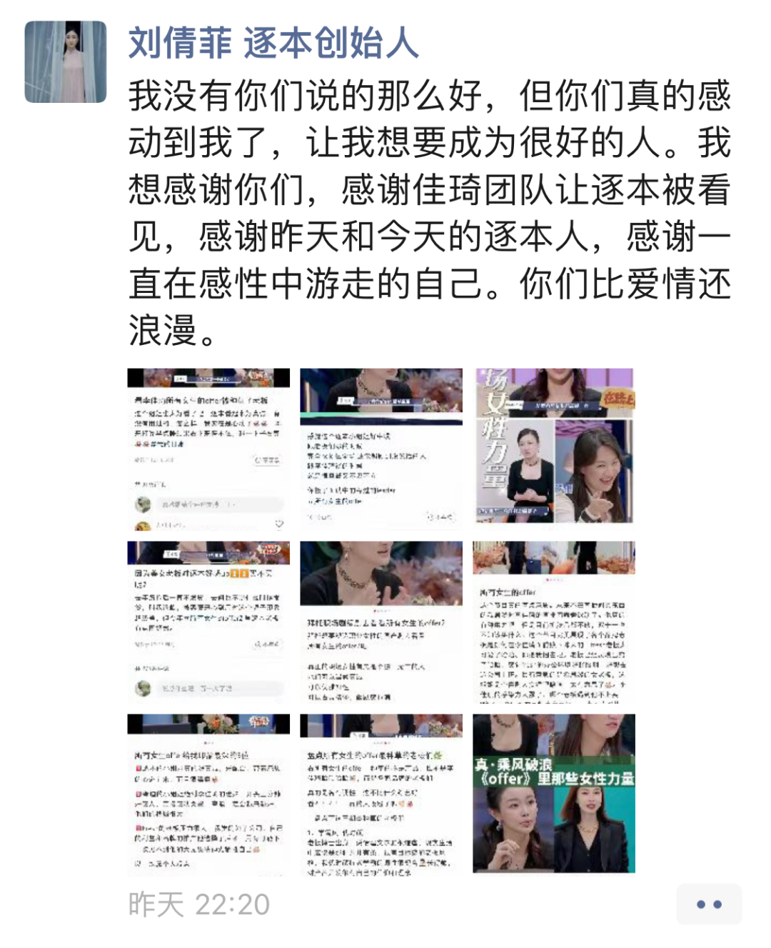 这些细节在综艺中的真实表现,让刘倩菲这位品牌创始人“圈粉”无数。而刘倩菲后来也在朋友圈中,表达了对观众及李佳琦团队的感谢之情。