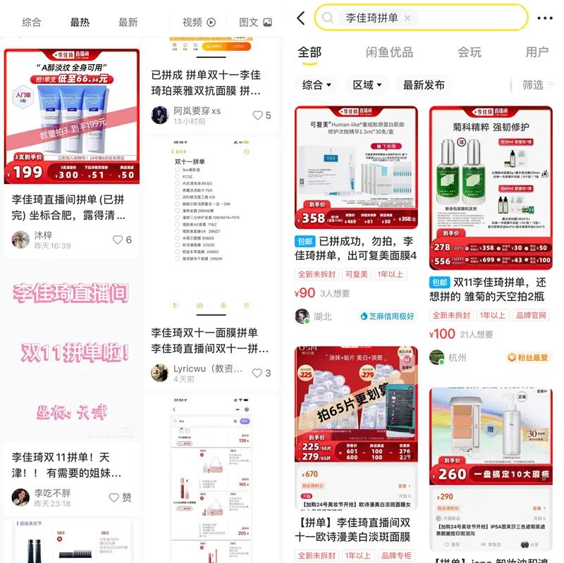 各个平台上关于“李佳琦拼单”的内容