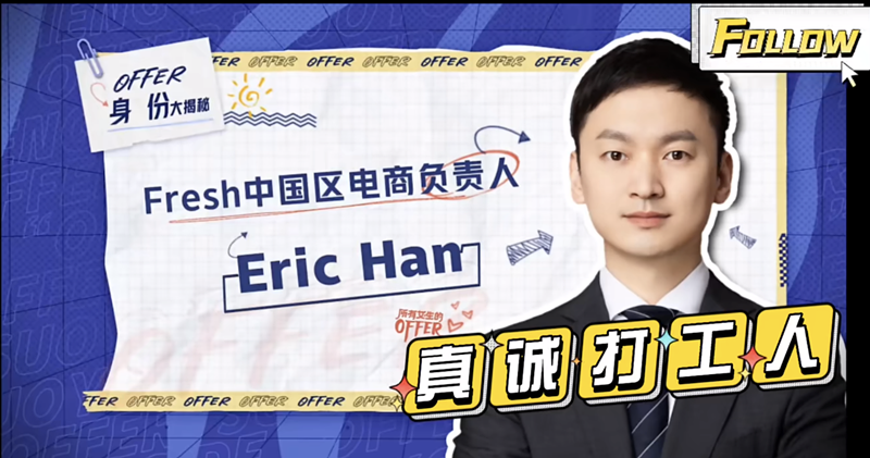 另一位“出圈”的品牌代表,则是Fresh中国区电商负责人Eric Han。