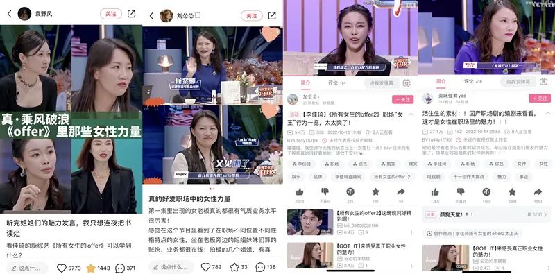 此外,offer2中出镜的女性创始人及高管,也同样在社媒平台上引发网友关于“女性职场”的讨论。