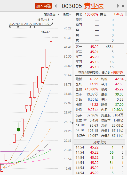 10月21日,竞业达高开高走,并封住涨停板。截至收盘,当日成交额为8.3亿元,换手率高达37.96%。过去十三个交易日,公司股价累计涨幅达180%。