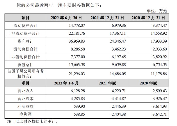 就在东风股份增资之后,2022年上半年博盛新材总资产有明显的增长,半年实现的营业收入6128.28万元就比上一年度的全年收入还高45.20%,但营业成本4285.83万元却低于上一年度的全年营业成本;净利润为538.85万元,结束了亏损并实现盈利。