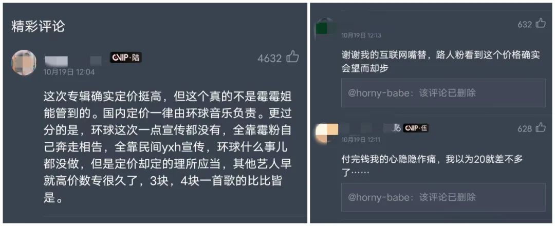除此之外,除了各大平台的开屏、焦点图宣传,唱片发行方环球音乐并未在发行前对专辑进行大规模的宣传,平台在上线专辑时也打出了“空降大礼”、“无预警释出”的字样。如此一来,环球音乐在专辑行销推广的环节上就省下了一大笔钱,售价走高就凸显得似乎更不合理了。因此,专辑评论区的大量负面言论也直指环球音乐。
