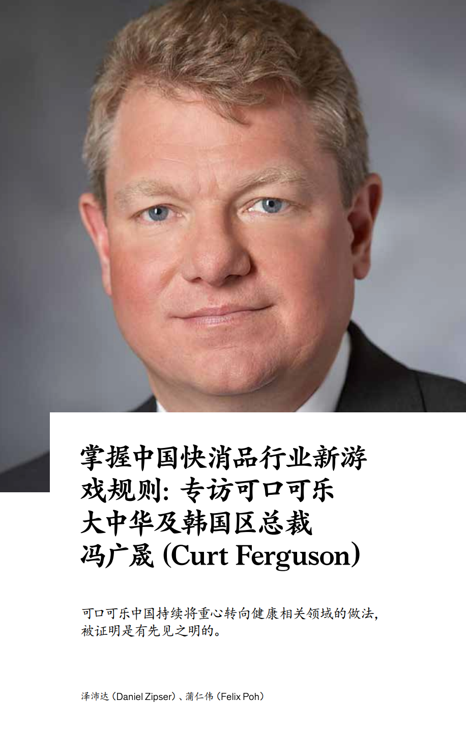 公开资料显示,在麦肯锡时,蒲仁伟和他的同事还曾经一道专访过可口可乐前高层。在这篇名为《掌握中国快消品行业新游戏规则:专访可口可乐大中华及韩国区总裁冯广晟(Curt Ferguson)》的采访中(下图),他们提炼的一个亮点是——可口可乐中国持续将重心转向健康相关领域的做法,被证明是有先见之明的。