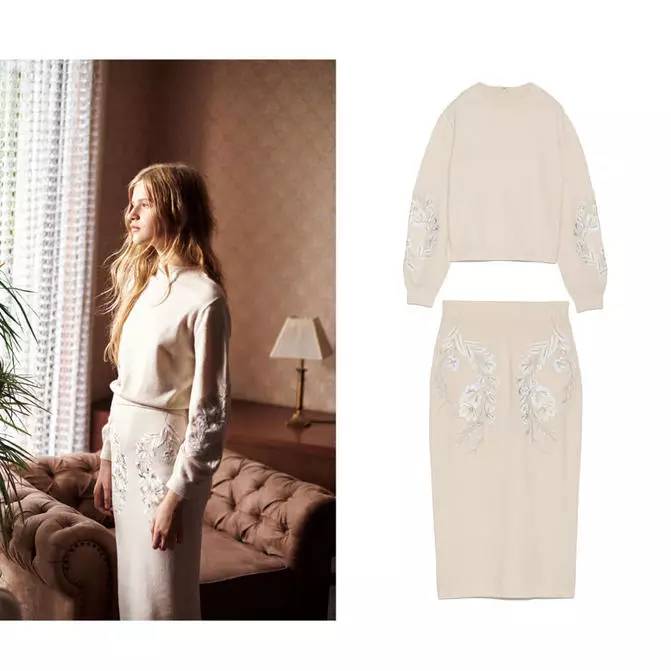 另外,暧昧色也用在了针织上面,配上刺绣,就感觉很精致。一套下来2000块的样子,小公举们可以去买买买。
