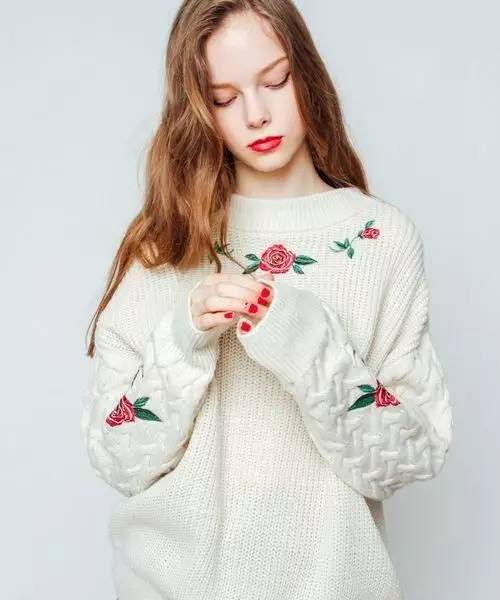 玫瑰花刺绣的毛衣,也好好看!