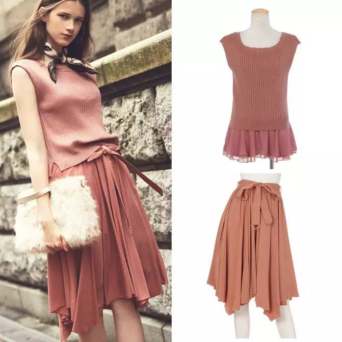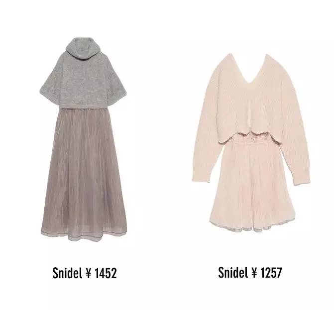 他们家秋冬出了很多下面这种成套搭配的衣服,日本今年一直很流行。不过Snidel真的不便宜,秋冬一件半裙价格在1000-1300之间,这种内搭上衣也要上千。