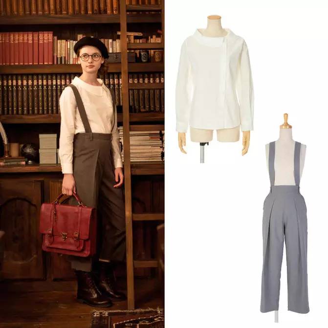 搭素色的维多利亚领小衬衫,就很lady。