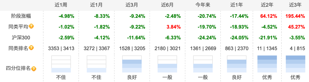 也正是源于无差别“等待宏观基本面变化,让优秀企业能够重归价值”,导致其管理产品连续两年均无起色。