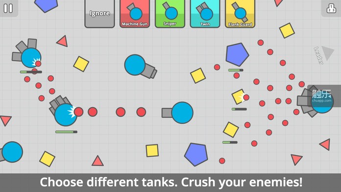 三、简单的成长系统。在早期的io游戏中,成长到极限(理论上来说没有极限,实际上到达某个临界点后就极难再成长了)需要的时间不会超过半小时。成长有两种途径:一,获取资源;二,杀死对手。“获取资源”在很多游戏中是控制玩家成长速度,增加游戏时间的手段。而在所有的io游戏中,这个过程都极为简单而快速。