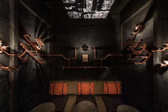 另外,餐厅还有一个复古理发店风格的包厢。这也是为了反应主厨的喜好。据设计师介绍,主厨除了爱好烧烤,对于理发店也有自己的偏好。