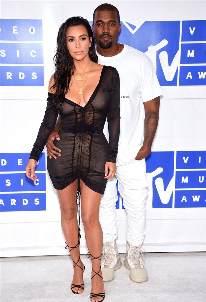 同时金·卡戴珊也抵达了会场——她穿着一件半透的黑色迷你连衣裙,裙子的正面有着一道别致的褶边设计。大开的低领领口、裸露的香肩和半湿的长发,让她成为了性感的代名词。系带高跟鞋凸显出腿部线条,看来金·卡戴珊的瘦身计划很成功;脖子上个性的金项链让整体造型更为丰满。