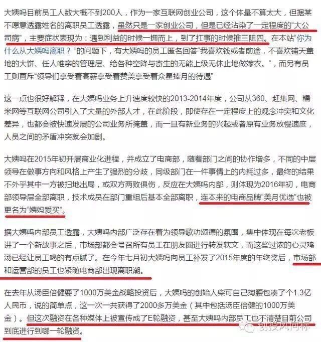 在这位知乎神圣质疑了美柚数据造假两天后,又在知乎这片热土上,出现了大姨吗离职前员工爆料,说大姨吗的E轮融资很飘忽,公司内部问题很严重。